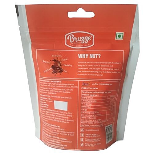 About @import url("https://www.desercart.com/static/froala_style_v2.min.css"); Brugge brings the rich tradition of chocolate making with these handcrafted Almond Rocks that are made with ingredients, techniques and traditional secrets learned from Belgium chocolatiers. Brugge gives you all the exclusive flavours and the magic associated with its name. Ingredients @import url("https://www.desercart.com/static/froala_style_v2.min.css"); Almond 40 %, Suagr, Hydrogenated Vegetable Fat, Cocoa solids, Milk Soilds, Emulsifier (INS E322,E476) Allergen Advice :- Contains Milk, Nuts & Soy.