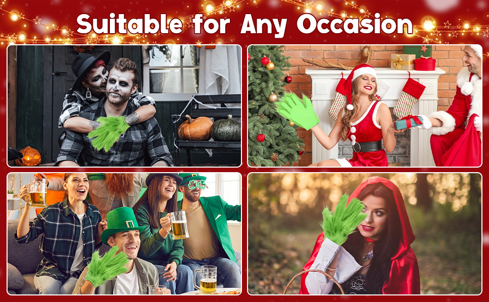 Christmas Green Gloves Plush Gloves Comedy Movie Christmas Cosplay Costume Accessories Carnival Day of Dead Holiday Xmas Party Favor