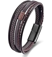 Brown Leather Bracelet Men Leather Bangles Magnetic-Clasp Braided Multi-Layer Wrap Mens Bracelet