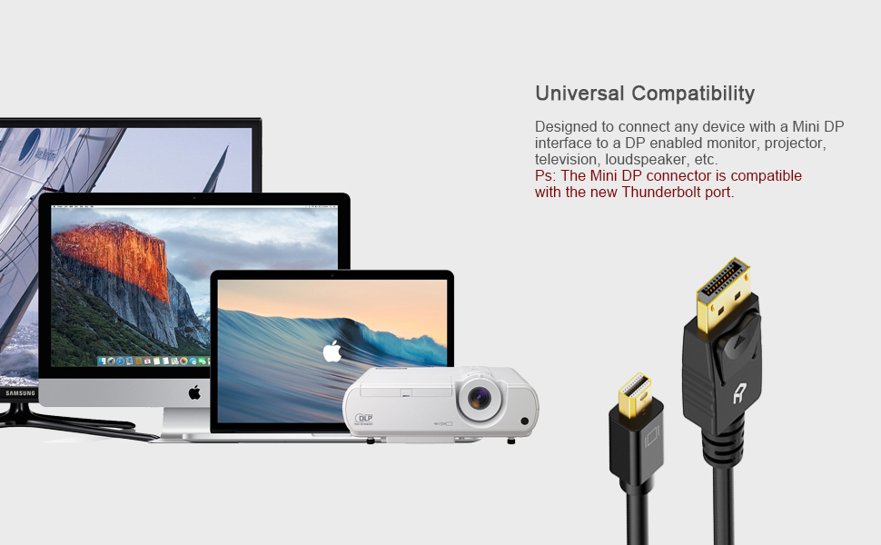 RankieRankie Mini DisplayPort to DisplayPort Cable, Mini DP to DP, 4K Ready, Gold Plated, 6 Feet