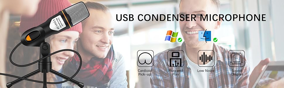 VIMVIP USB C Microphone for PC USB-C Phone, USB Type C Condenser Microphone with Stand Plug & Plug Compatible with PC, Laptop, USB C Phone