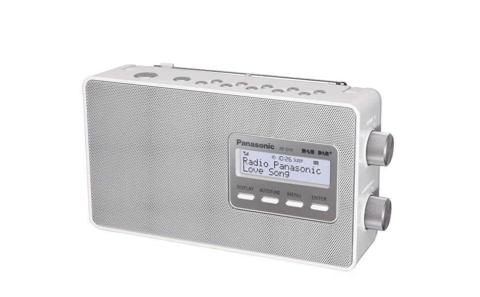 The Panasonic RF-D10EG-W Digital Radio offers exceptional digital reception with DAB/DAB+ and FM tuning capabilities, ensuring a noise-free listening experience. Its user-friendly design includes a wide LCD display, sleep and alarm timer functions, and the convenience of both mains and battery operation, making it perfect for any setting.