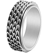 Nanafast Dragon Scale Anxiety Ring for Men Cool Stainless Steel Snake Dragon Scales Spinner Rings Fidget Ring Mens Ring