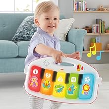 I wish I could give this ten stars! We just had our first baby and registered for the best of the best. Well, turns out, our baby doesn’t really care about that stuff (go figure). Our baby’s favorite items are the $30 boppy lounger and this!! She was loving sounds and music so we ordered this when she was about 10 weeks old. I love how easy it is to maneuver. She absolutely loves slamming her feet on the keys and making music. We are so glad we got this and highly recommend getting it or registering for it!