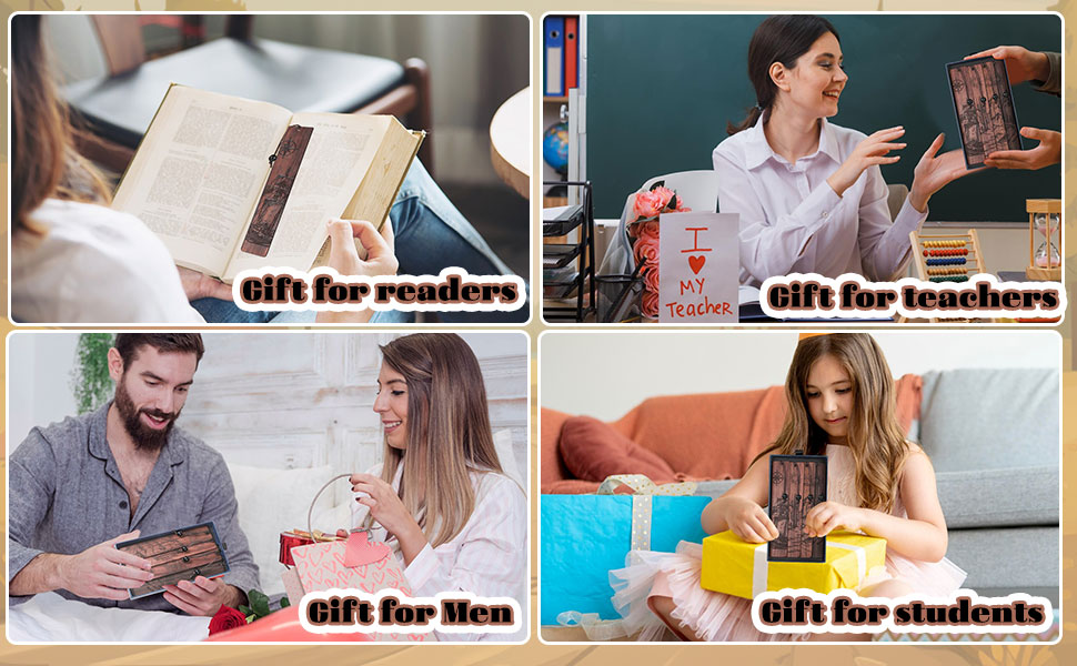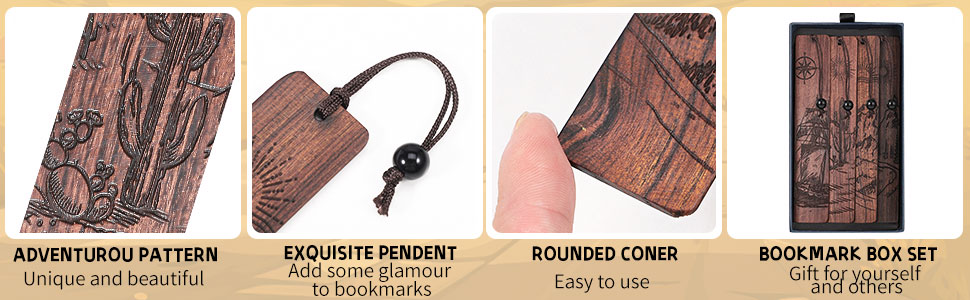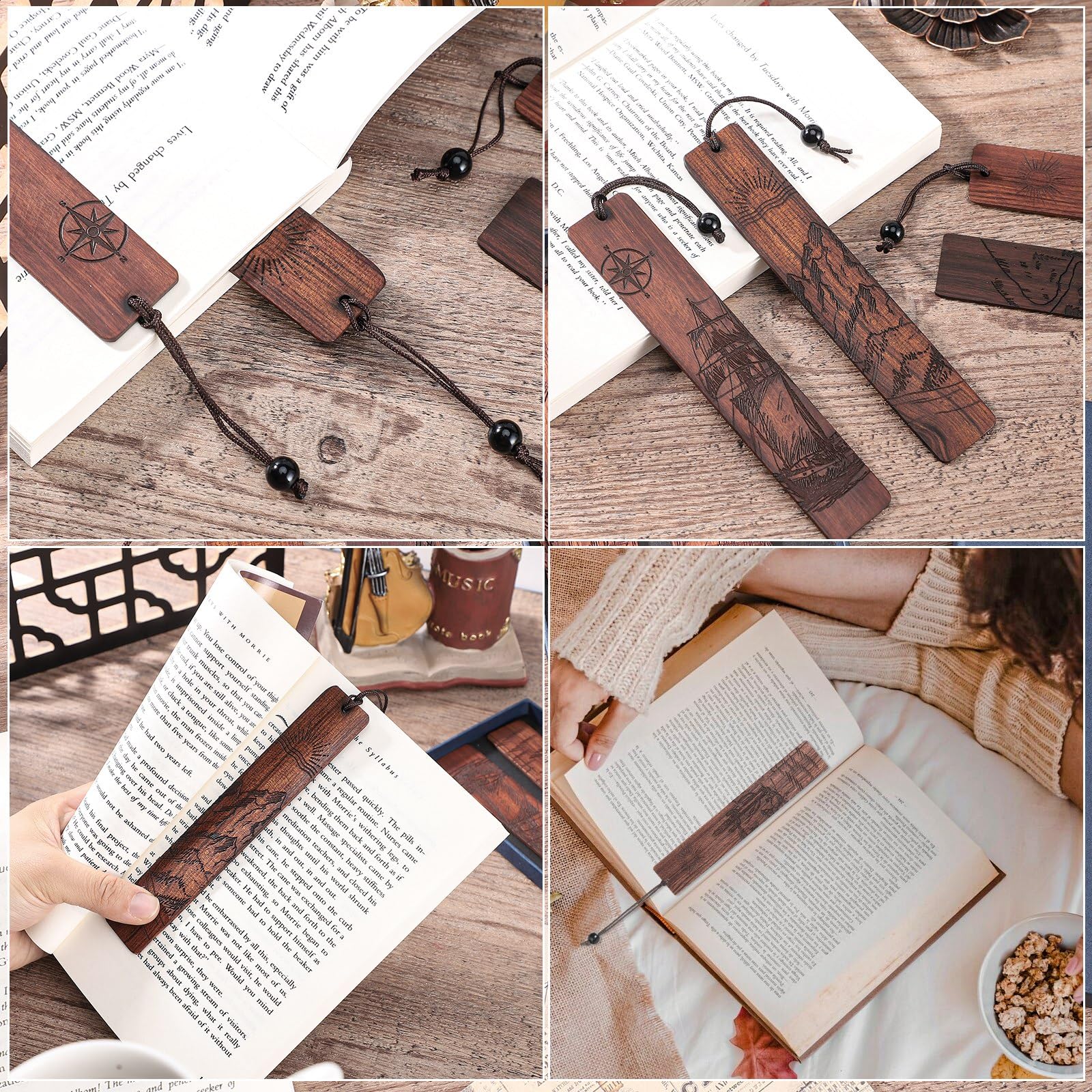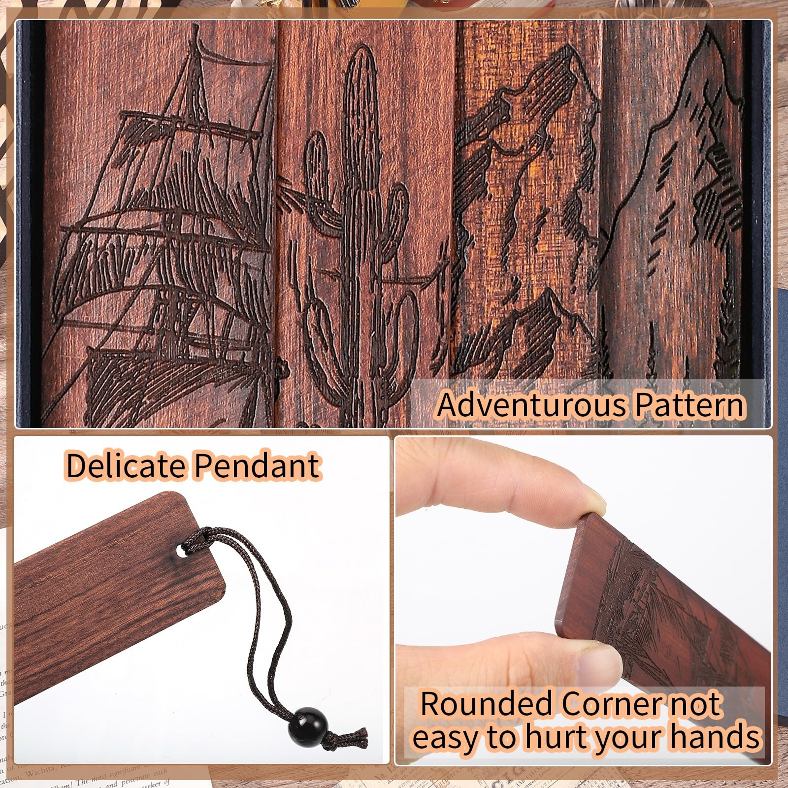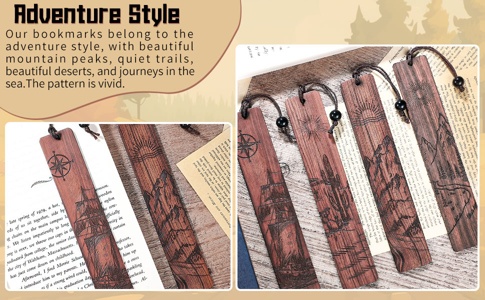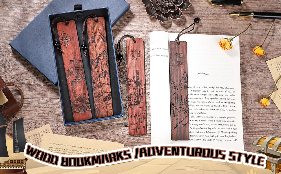 This set of 4 wooden bookmarks features unique adventure-themed designs, crafted from natural wood for a smooth finish and light fragrance. Perfect as gifts for book lovers, students, and teachers, these bookmarks are both functional and stylish, making them an ideal addition to any reading collection.