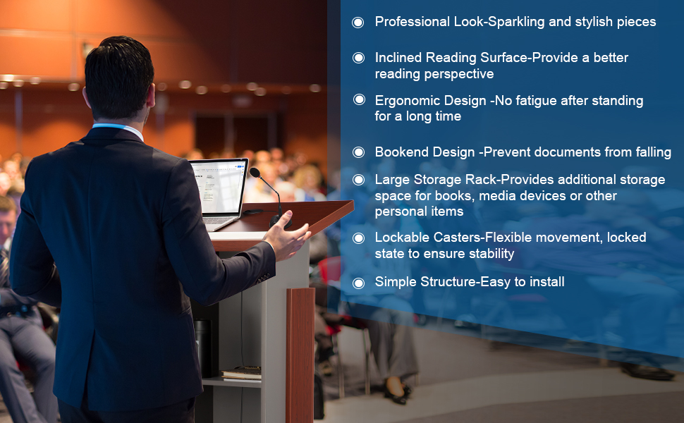 Wooden Podium Stand With Wheels Adjustable Microphone Stand Portable Mobile | Desertcart Japan