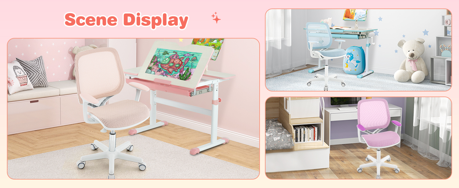 Great chair for kids! It’s very comfortable and the height is easy to adjust. The mesh back is breathable and the armrests are nice. The sit-brake wheels are safe and help kids stay focused. Perfect for studying or using the computer. My child loves it!