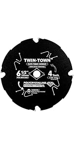 The TWIN-TOWN PCDT71406 is a 7-1/4 inch circular saw blade featuring 6 polycrystalline diamond-tipped teeth for extreme durability and sharpness. Its ultra-thin 1.8mm kerf minimizes dust and material waste, while laser-cut anti-vibration vents reduce noise and vibration for smoother cuts. The specially formulated anti-stick coating prevents gum-up, making it ideal for cutting fiber cement boards and ultra-hard materials like HardiePlank, Eternit, MDF, and Corian.
