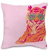 The Nvotell Pink Tiger Pillow Cover is a vibrant 18x18 inch flannel throw pillow cover featuring a retro pink and orange tiger design. Crafted from soft, durable flannel with a hidden zipper closure, it fits standard pillows perfectly and adds a funky, preppy touch to any living space, bedroom, or office.