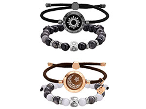 Elegant Beaded Bracelets - Natural Stone & Stainless Steel Healing Energy Jewelry for Couple Lover, Adjustable Sun and Moon Non-Smart Bracelet Set with Positive Meaning, Perfect Friendship Gifts