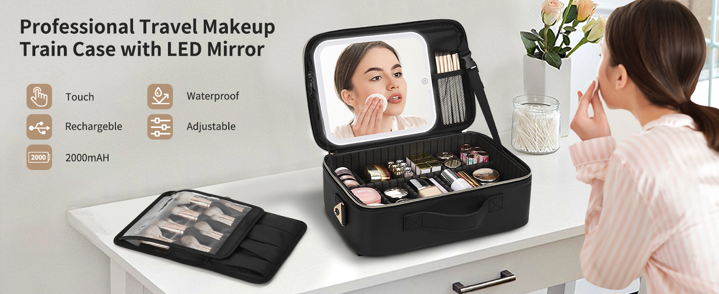 Monstina Makeup Bag With Led Mirror Makeup Case With Lighted | Desertcart Japan