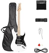 We couldn't be happier with this electric guitar. It was a gift for my child, and they absolutely love it. The guitar not only looks great but also produces an awesome sound. The quality of the instrument is excellent, and we were particularly impressed with the packaging, which was very secure. The fact that it came as a complete package with the amp, bag, and other accessories made it an incredible value and perfect for a beginner. This is a top-notch electric guitar starter kit. We're very pleased with the quality, and our child loves it. Highly recommended!