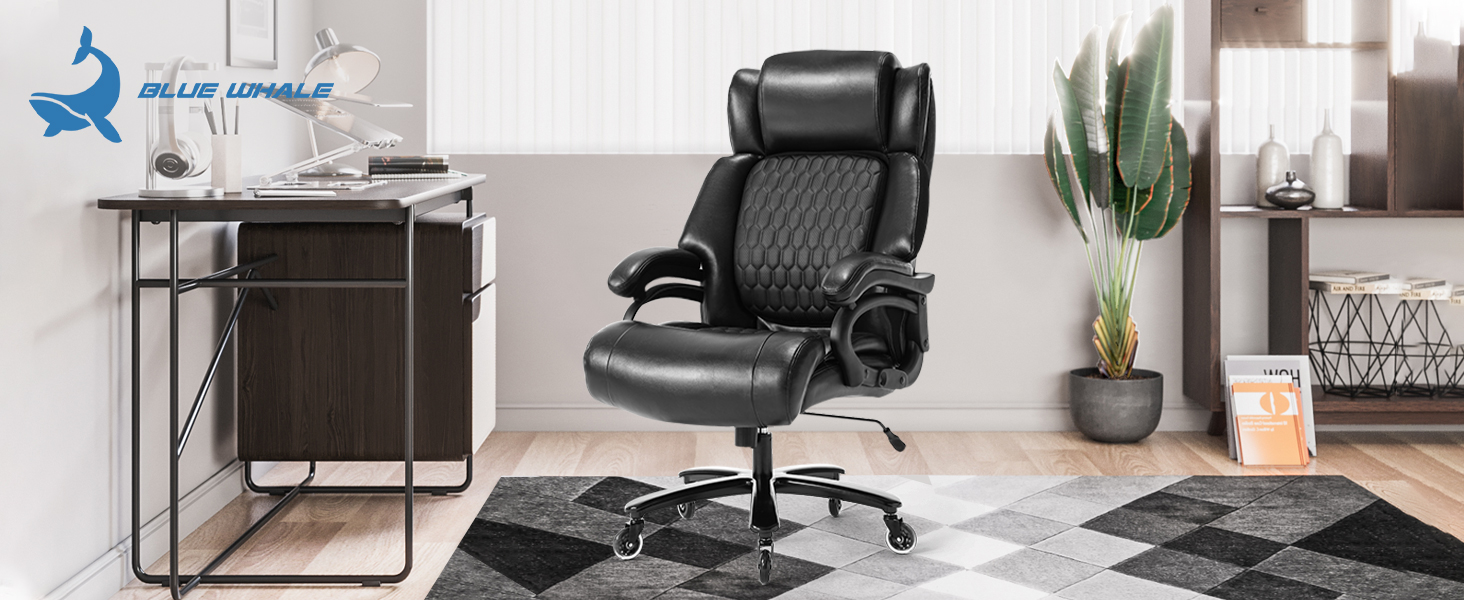 Ordered these office chairs ( purchased 2 ), based on online reviews and pictures. Blue Whale didn't disappoint me and extremely happy so far with purchase. Bought and received in December. Chairs were very easy to assemble with tool provided, took about 45 minutes for both. Chairs look good, very sturdy, and comfortable. I'm 6'1" and weigh 212lbs. Desk chair provides ample support for frame, and love the wider profile. So far its everything I wanted.