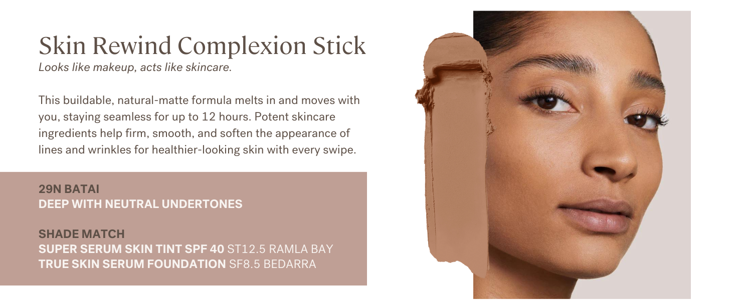 The ILIA Skin Rewind Complexion Stick is a versatile foundation and concealer that combines makeup with skincare benefits. This non-toxic, vegan, and cruelty-free formula offers weightless coverage while actively firming and smoothing the skin. With a long-wear capability of up to 12 hours, it features a blend of powerful ingredients like Ceramide-Peptide Complex and Winged Kelp Extract to enhance your complexion's health and appearance.