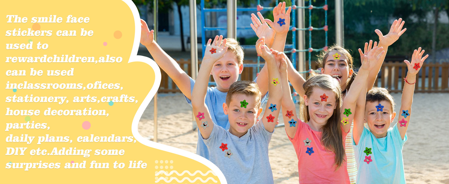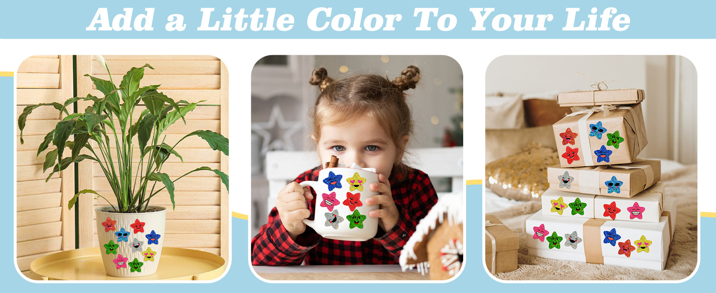 This pack of 700 one-inch smiley face star stickers features 8 vibrant colors and expressions printed on durable, waterproof metallic foil. Designed for easy peeling and residue-free sticking, these glittery stars are perfect for teachers and parents to reward kids, decorate planners, gifts, and more, making motivation visually irresistible.