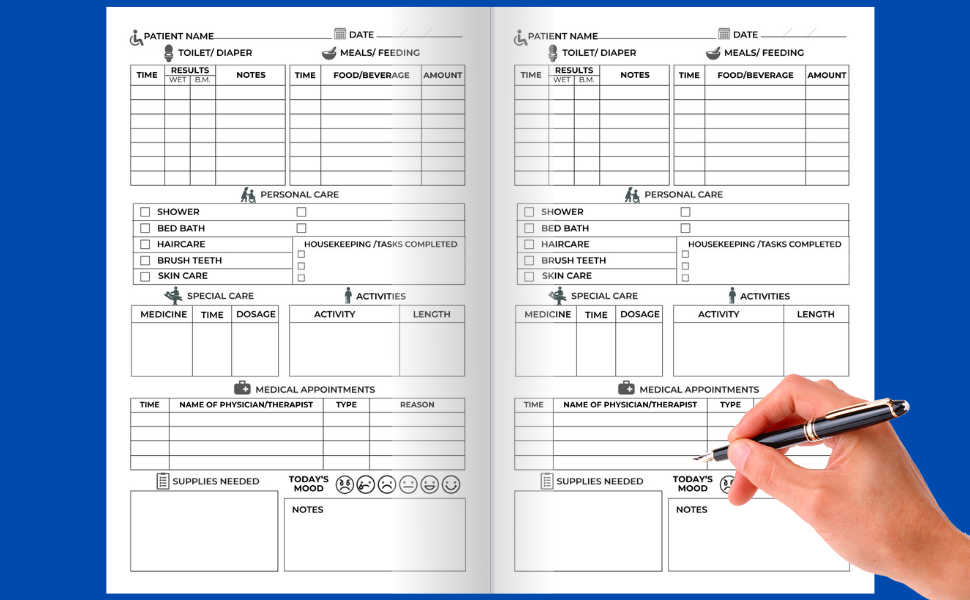 Caregiver Log Book: A Daily Record for Seniors, Elderly, and Assisted Living Patients to Track Medication, Meals, Appointments, Personal Care, Activities, and More. Paperback – 31 Oct. 2023