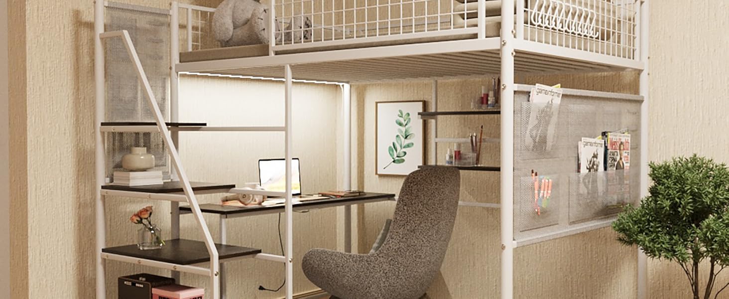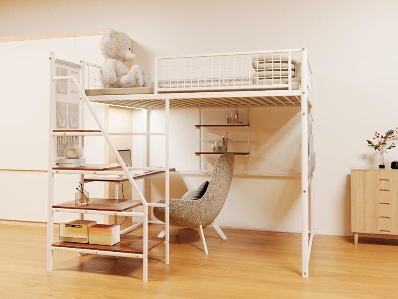 Full Size Loft Bed With Desk And Open Shelves Heavy | Desertcart Japan