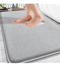 The OLANLY Bathroom Rug (45x27 inches) features ultra-soft chenille for plush comfort, a quick-drying, highly absorbent microfiber surface, and a durable thermoplastic rubber backing for superior non-slip performance. Machine washable and fade-resistant, this rug combines practical durability with elegant design, making it a top choice for modern bathrooms.